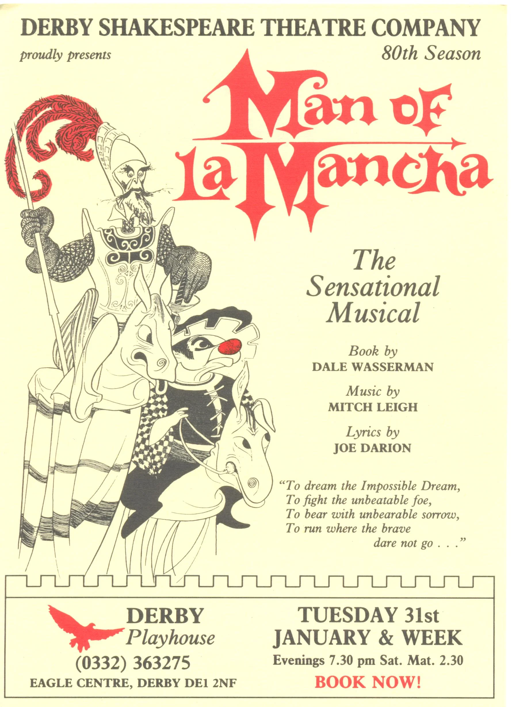 This musical retelling of Cervantes' classic tale of Don Quixote and Sancho Panza was brought to vivid life on the Derby Playhouse stage by Philip Beeson and has excellent cast and crew.