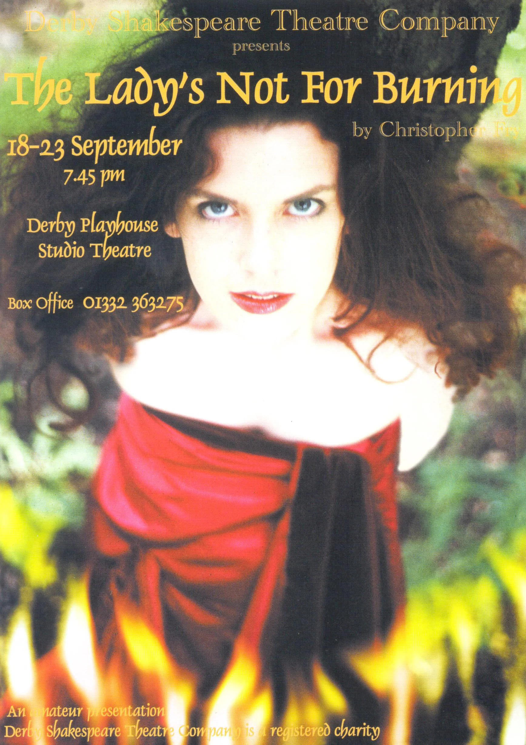 Our 2000 production of Christopher Fry's classic comedy 'The Lady's Not For Burning' was directed by Elaina Evans who brought great romance and heart to a production that delighted audiences at the Derby Playhouse Studio.