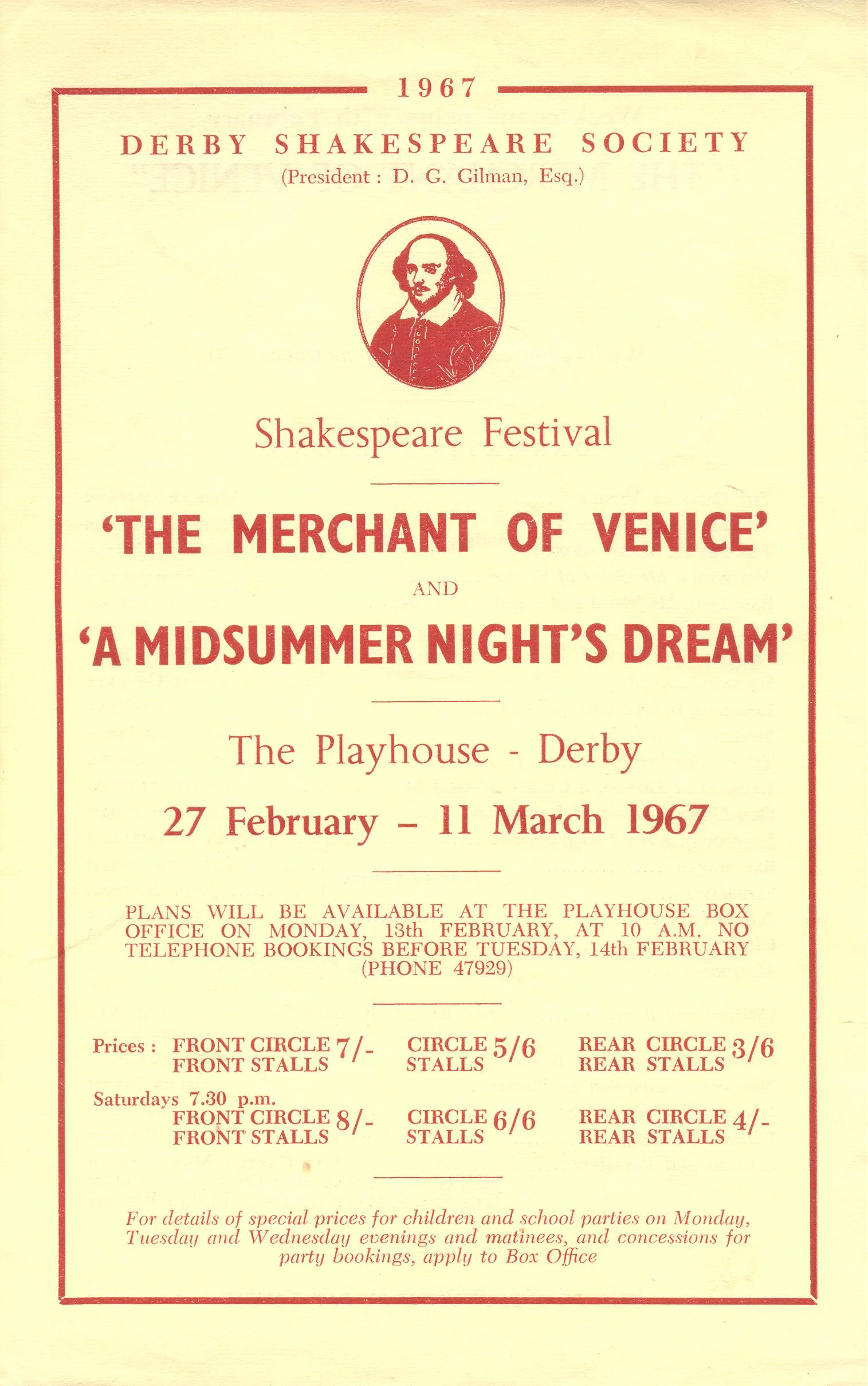 As was the custom at the time in 1967 we presented our 'Shakespeare Festival' - two back-to-back productions in consecutive weeks at the old Derby Playhouse in Sacheveral Street.