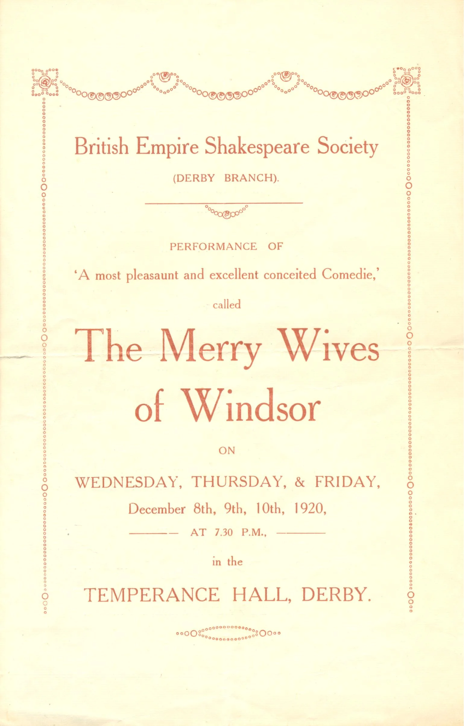 Our first production of 'The Merry Wives Of Windsor' marked a return for the British Empire Shakespeare Society (Derby Branch).