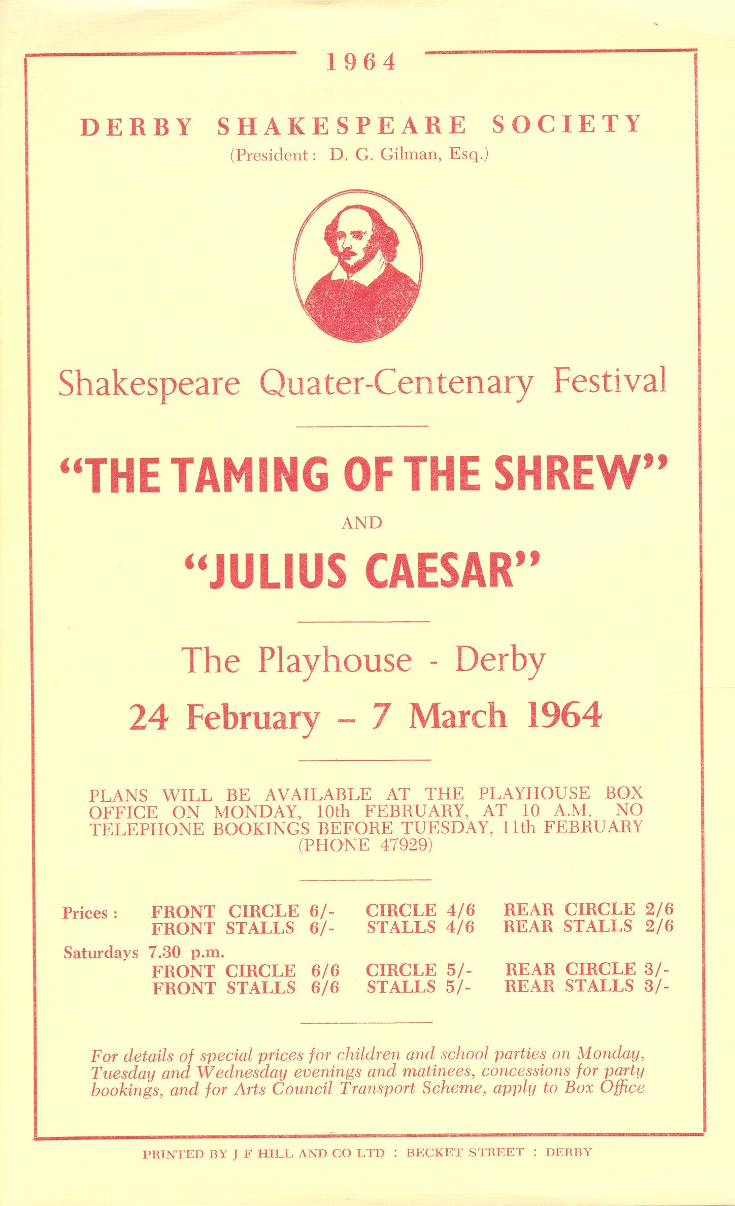 As was the custom at the time in 1964 we presented our 'Shakespeare Festival' - two back-to-back productions in consecutive weeks at the old Derby Playhouse in Sacheveral Street.