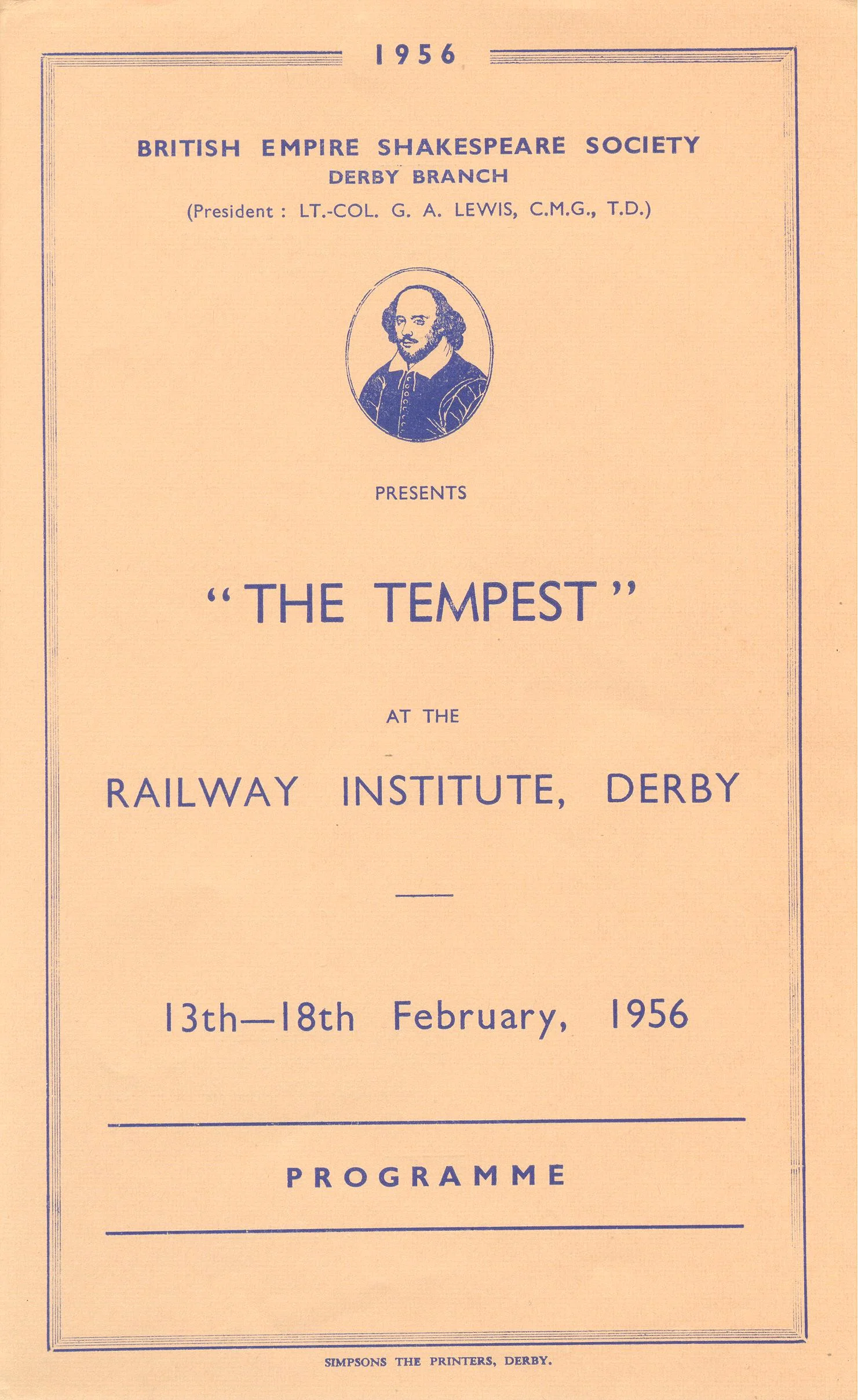 In 1956 we presented 'The Tempest' for the third time, on this occasion at the Railway Insitute, close to Derby's main railway station.