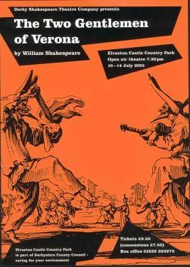 We returned to Elvaston Castle in the summer of 2001 with Ian Arnot's 'The Two Gentlemen Of Verona'. This was only the second time we've presented this bawdy comedy, the first being in 1973.